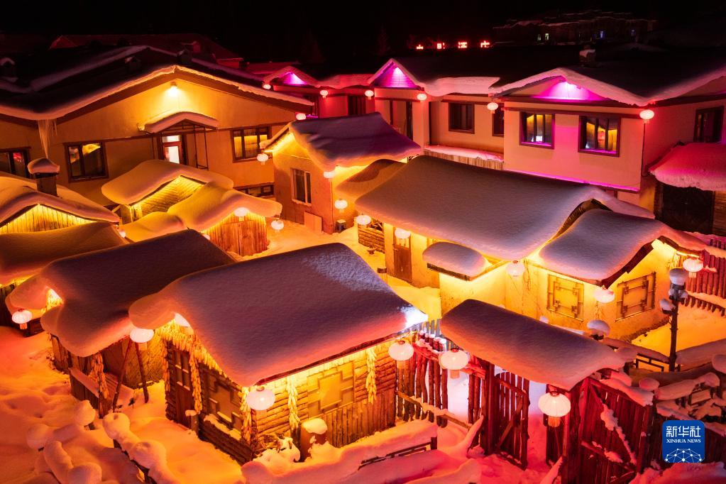 黑龙江省雪乡景区夜景(2022年12月13日摄)。新华社记者 谢剑飞 摄