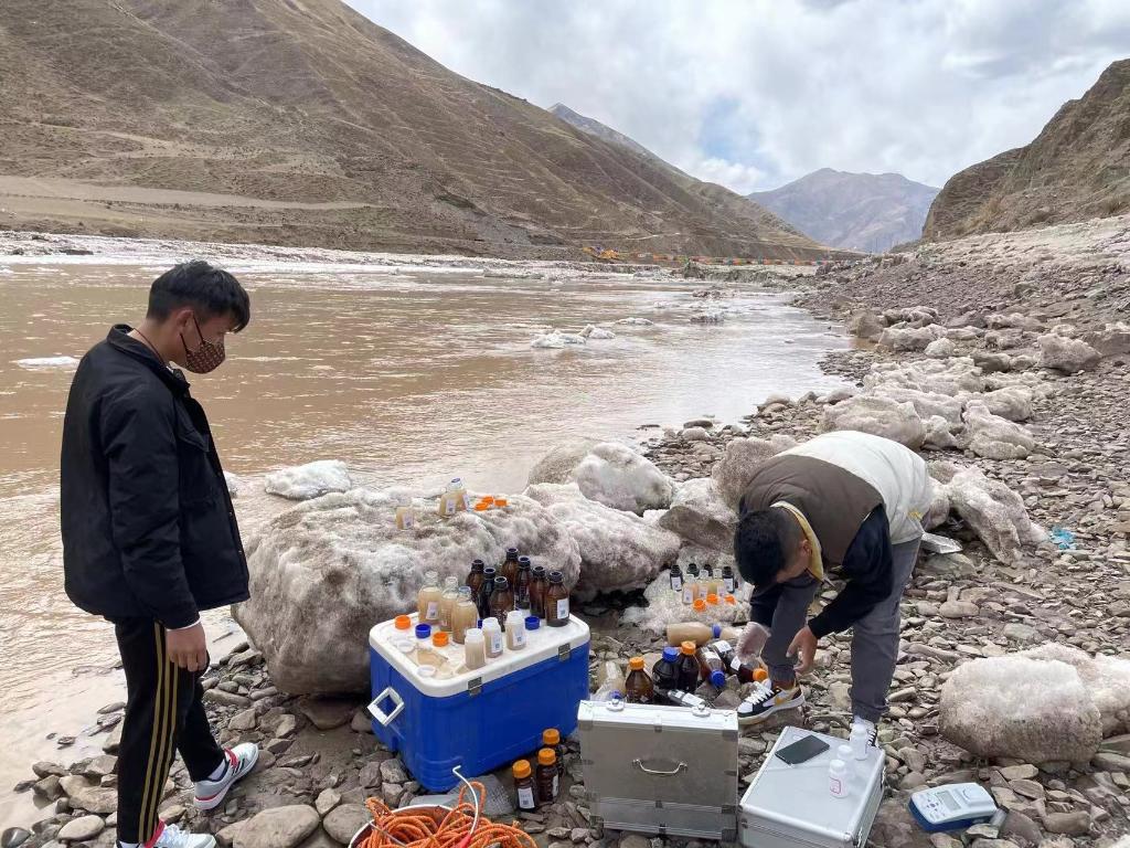 2022年4月11日 ,工作人员在国控直门达断面进行水质采测分离工作。(受访单位供图)