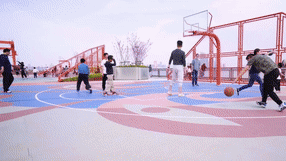 在废弃码头改造成的炫酷国风球场打篮球