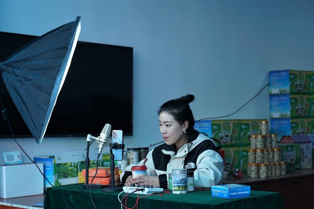 3月16日,青海众辉信息产业有限公司大通分公司的主播正在直播带货。新华社记者解统强 摄