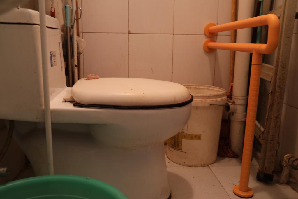 曹凤霞的家乍看并无特别之处,直到行动不便的她拄着凳拐,几步一歇、稳扎稳打地穿过防滑地板,演示如何抓着马桶前的扶手灵活起坐时,记者才发现屋里“潜藏”的“小巧思”。
