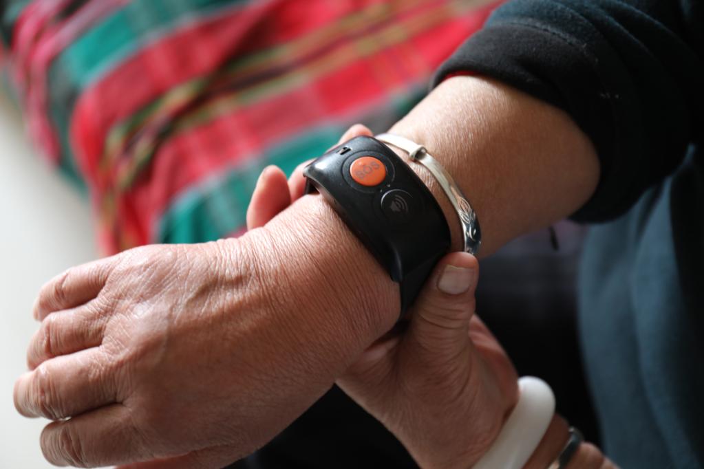 社区还为曹凤霞配备了智能手环,不仅可以播报时间、心率、血压等信息,还能一键打给家人和社区。曹凤霞说,有了这个“电子保镖”,家里少了许多后顾之忧,居家、外出也更加自如。