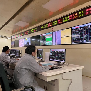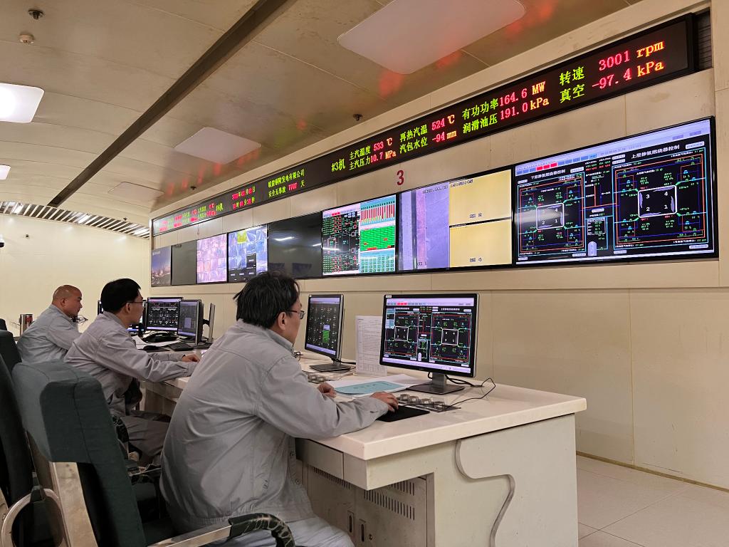 工作人员通过两层掺氨燃烧器控制系统进行在线调整。新华社记者马姝瑞 摄