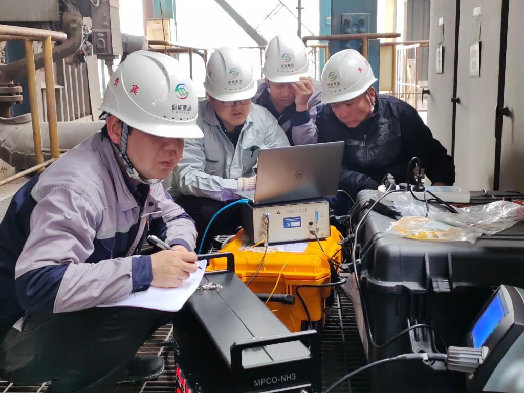 试验期间,工作人员在现场开展炉膛出口排放气体组份测量。(郝军红 摄)