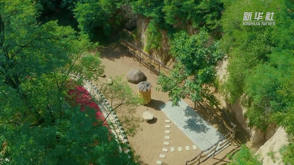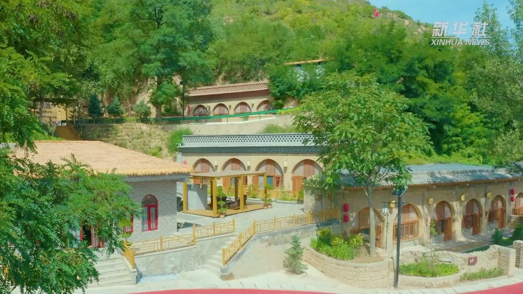 曾经的旧窑洞如今变身特色民宿,文化长廊可供游客沉浸式体验陕北非遗,周边还有大棚果蔬可采摘,山庄鱼塘可垂钓。