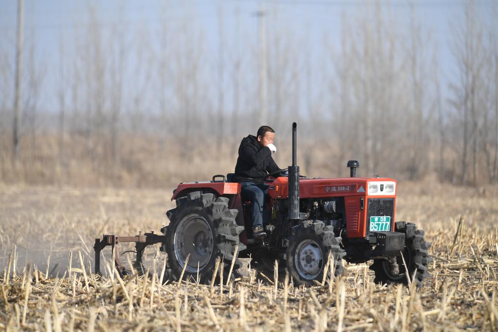 3月28日,在吉林省镇赉县,农民驾驶农机整地。新华社记者 张楠 摄