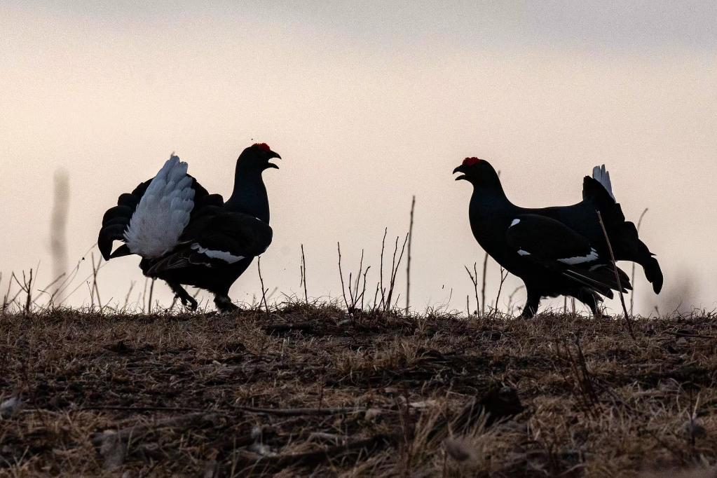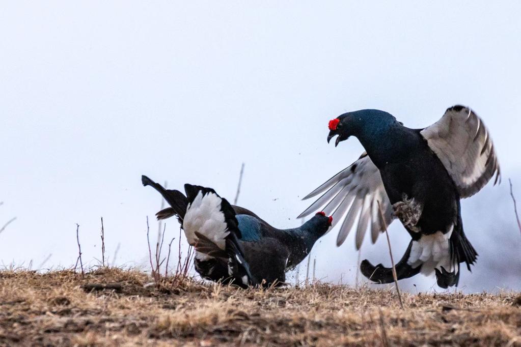 近来每天早上,天刚蒙蒙亮,黑琴鸡就聚集在林间草地打斗。它们时而追逐对峙,时而铁嘴啄眼,时而吼声低沉,时而锐爪封喉,激烈的打斗场面吸引了众多摄影爱好者和观赏者。