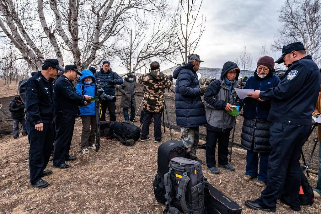 4月17日,民警在向摄影爱好者宣传鸟类保护知识。(宿海东 摄)