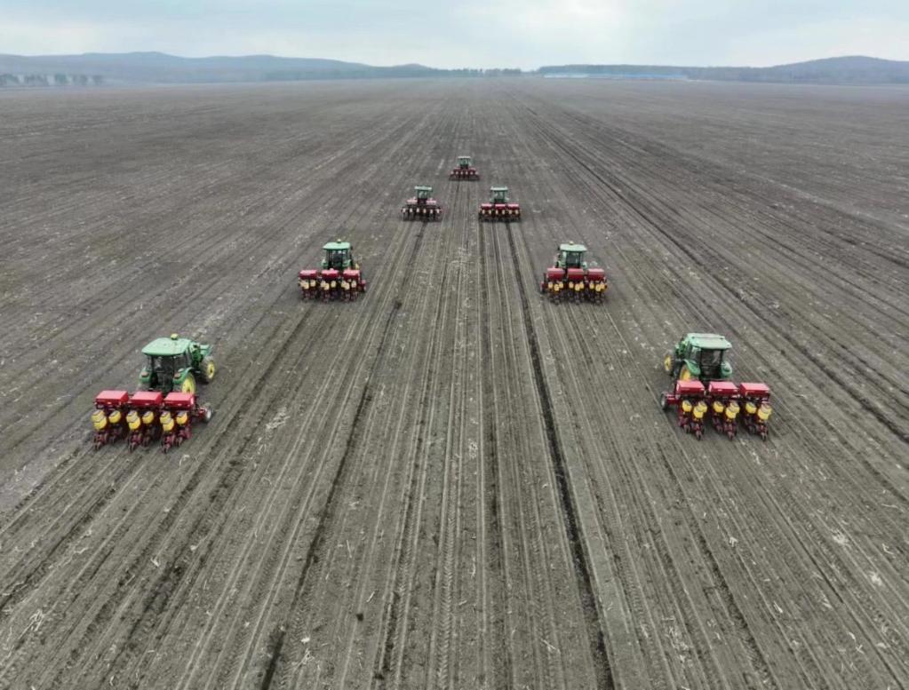 在位于黑龙江省七台河市的北大荒集团北兴农场有限公司,一台台播种机在田间穿梭。今年,北兴农场大豆种植面积25.85万亩,采用气吸式播种机配套大马力机车,在保证大豆播种深度、均匀度的同时提升了大豆播种速度,每台套每天可完成300余亩大豆地的播种任务。