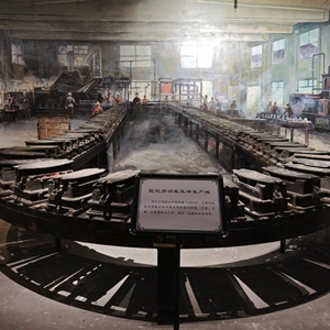 中国青砖茶博物馆展陈的青砖茶生产线。新华社记者伍志尊 摄