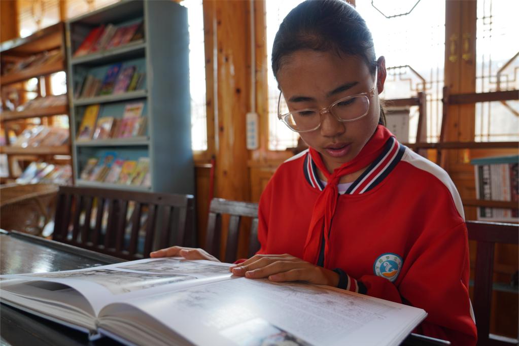 图为下绮罗完小学生寸特仪在绮罗图书馆看书。新华社记者佟璐 摄