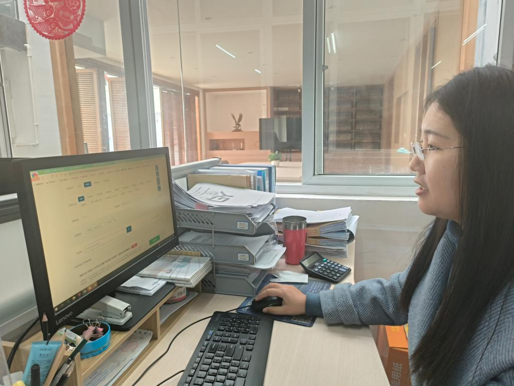 成都通德药业有限公司政府事务部经理武银娜正在智慧企业服务平台上查阅信息。新华社记者李力可 摄