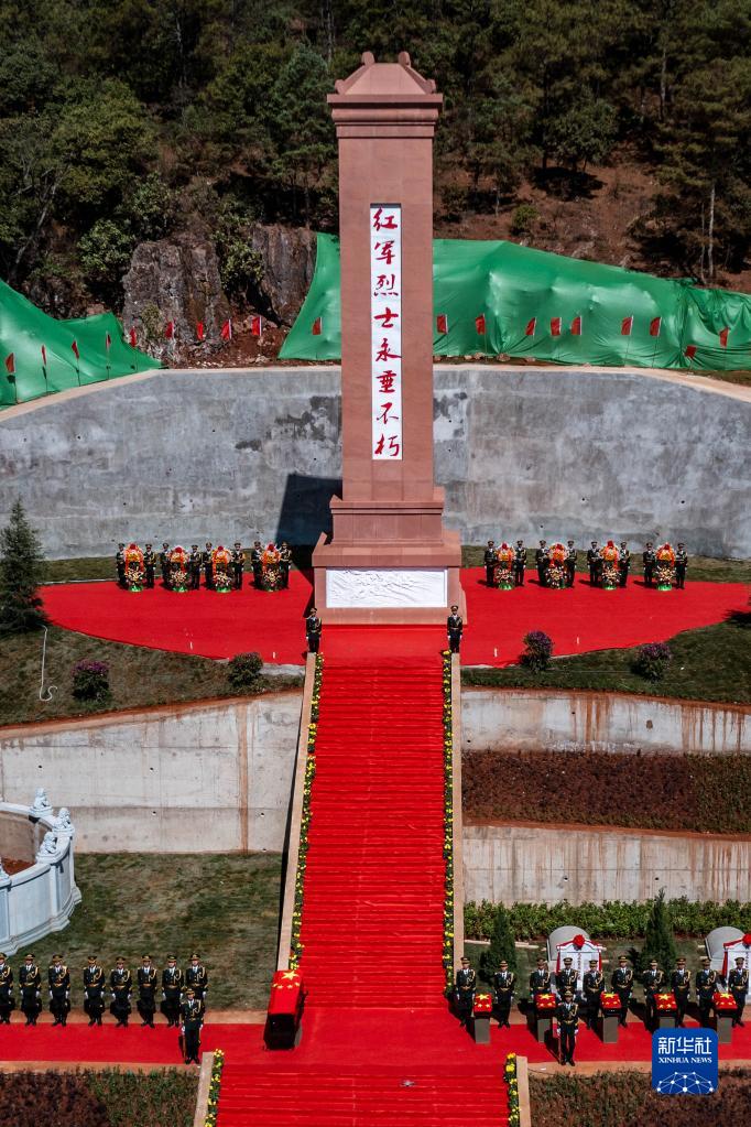 5月6日拍摄的云南省禄劝彝族苗族自治县九龙红军烈士洞红军烈士遗骸安葬仪式现场(无人机照片)。新华社记者 胡超 摄