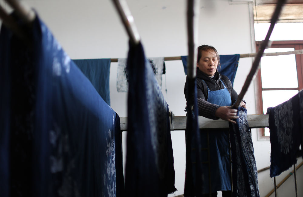 宁曼丽与这抹靛蓝色的初次相遇是在14年前,当时她在安徽经营着一家织布厂,受市场影响,面料积压,工厂濒临倒闭。