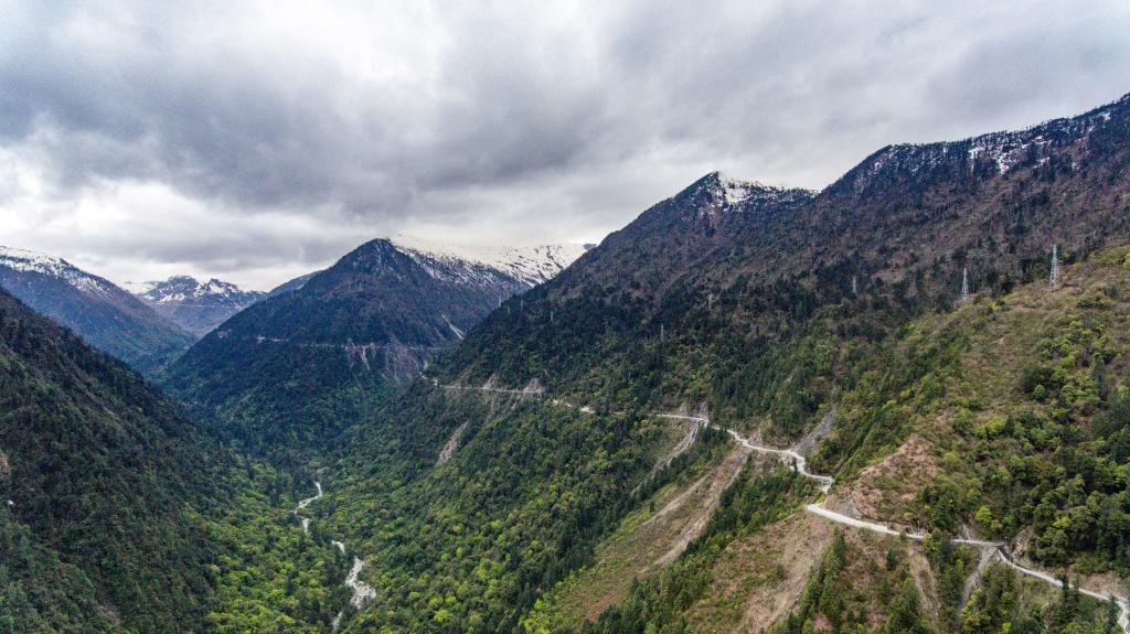 图为崇山峻岭之间的南方电网35千伏输电线路。新华社记者曹梦瑶 摄