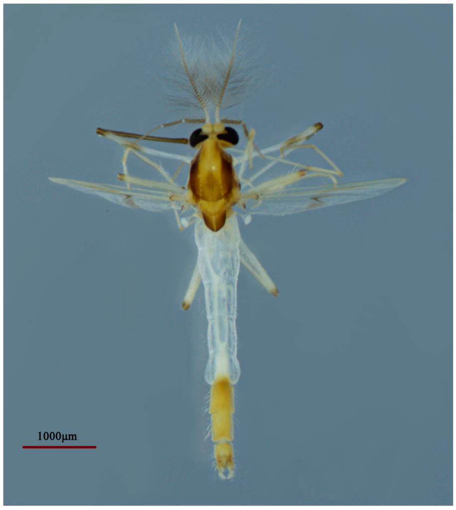 这是双斑倒毛摇蚊形态特征图。(武夷山国家公园科研监测中心供图)