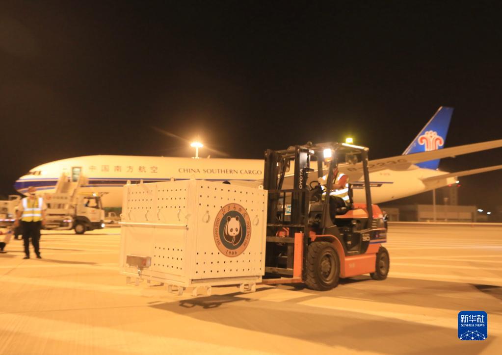 5月28日,大熊猫“丫丫”乘坐包机平安抵达北京。新华社发(王汉琦 摄)