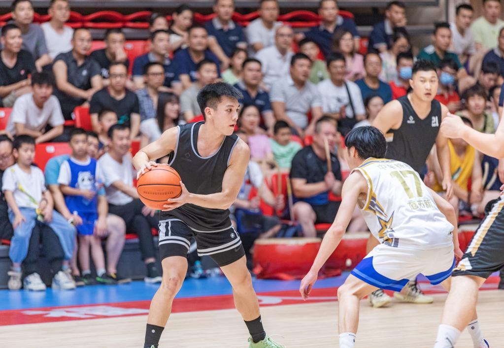 5月27日晚,亿都控股的球员在比赛中扣篮。新华社记者 刘芳洲 摄
