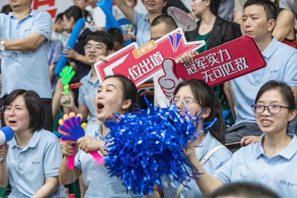 5月27日晚,亿都控股员工在场下为球员加油打气。
