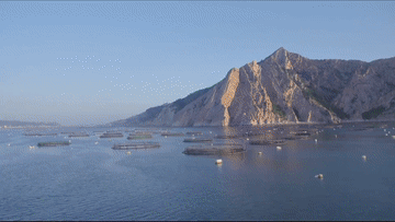 长岛的大钦岛附近海域的养殖网箱。