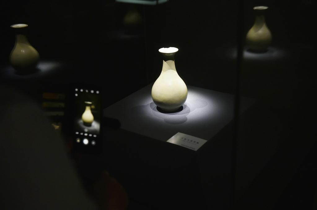 这是郑州大象陶瓷博物馆展出的青瓷玉壶春瓶。新华社记者鲁鹏 摄