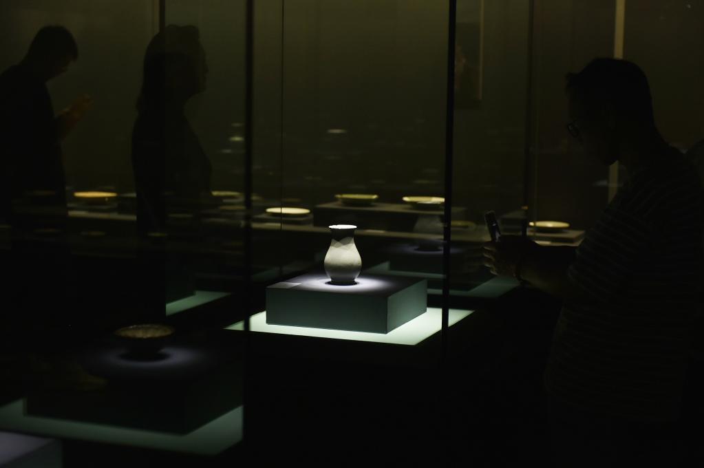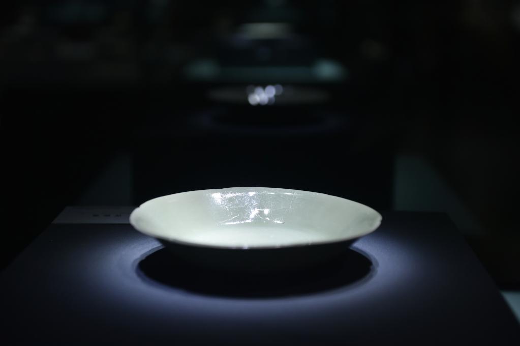 这是郑州大象陶瓷博物馆展出的青瓷盘。新华社记者鲁鹏 摄