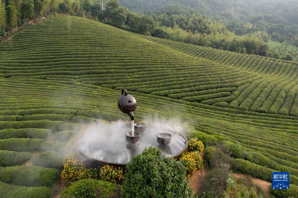 6月7日,在浙江省绍兴市越城区坡塘村的文化礼堂,工作人员展示点茶技艺。新华社记者 才扬 摄