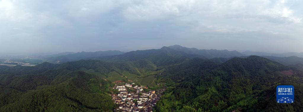 6月7日拍摄的浙江省绍兴市越城区坡塘村景色(无人机全景合成照片)。新华社记者 才扬 摄
