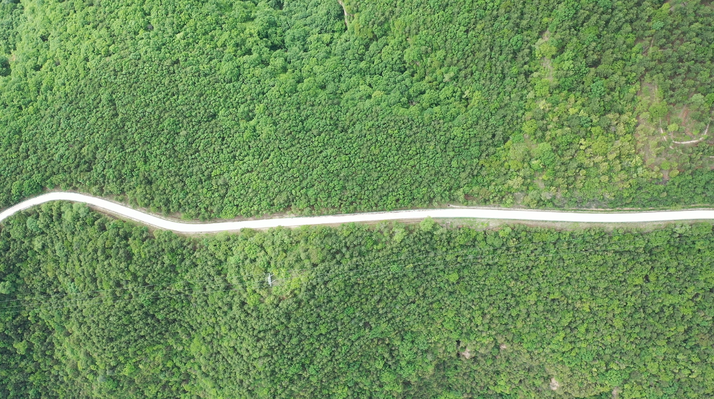 子午岭林区蒿咀铺林场一景(6月1日摄 无人机照片)。新华社记者 梁军 摄