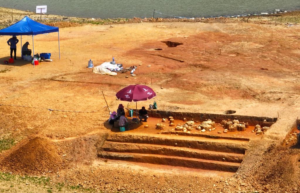 记者从广西文物保护与考古研究所获悉,在广西平果市黎明乡蟠桃村那物屯附近的达洪江水库库区一个半岛上,考古工作者近期发现一处战国时期墓葬,并挖掘出铜鼓、铜钺、玉环、玉玦等一批文物。