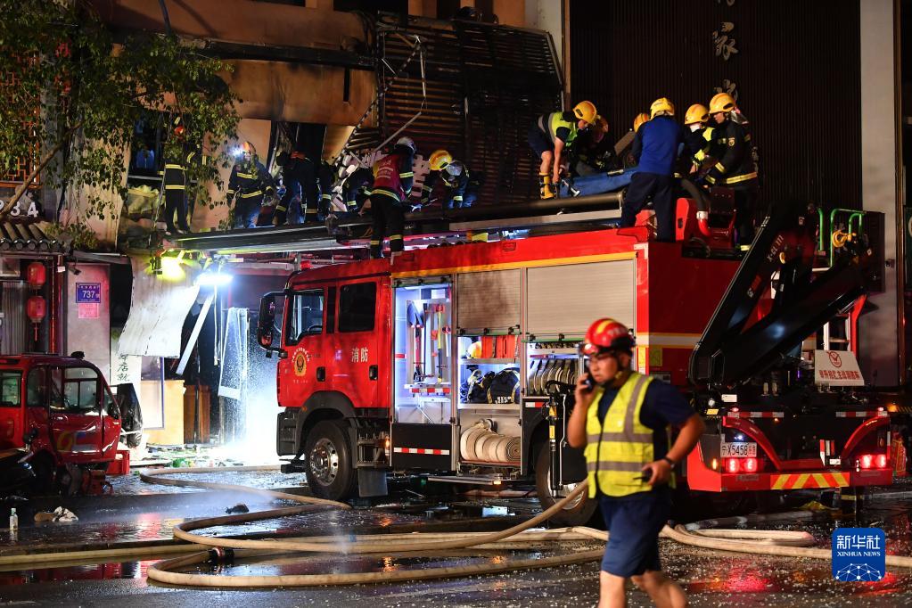 6月21日,消防救援人员在现场进行救援。新华社记者 王鹏 摄