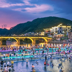 如今,上河村已成为远近闻名的网红打卡点。旅游旺季期间,每天平均有2万名游客从长三角各地前来戏水游玩。村里昔日的水晶作坊变成了主题民宿和农家餐厅。每逢节假日,进出村庄的私家车排成长龙,村里的民宿一房难求。