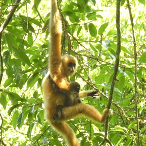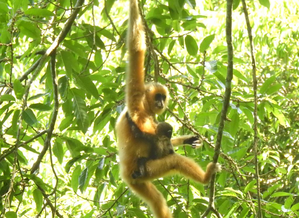虽然辛苦,但刘辉勤还是很喜欢在雨林里追随长臂猿奔跑,他不觉得累。“只要看到新生的幼猿就觉得自己的努力没有白费,我很热爱这份工作,只要能干就会一直干下去。”刘辉勤说。
