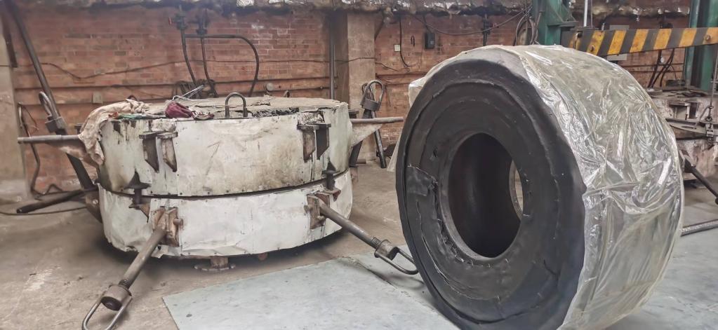记者走进当地一个轮胎翻新车间,看到10台直径2米、高1米的圆形翻新设备散发着热气,压力表指针显示有1.67兆帕的压强。旧轮胎包裹多层橡胶,被放入这种特定的密闭设备里加压加热,重新铸造轮胎花纹。