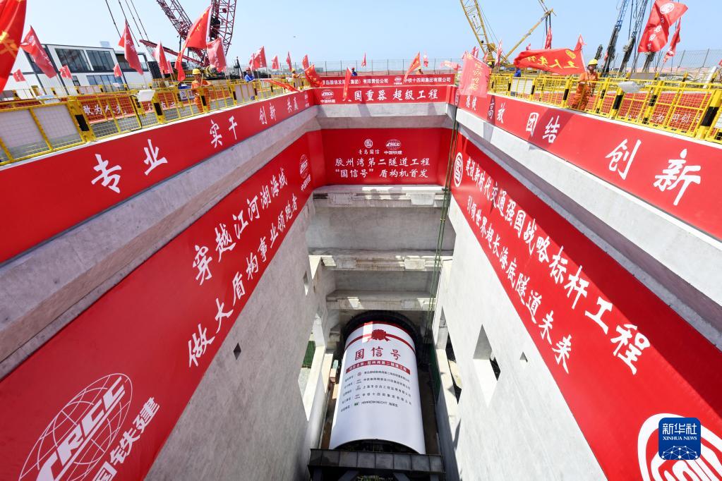 新华社北京6月30日电(记者樊曦)记者从中国铁建股份有限公司了解到,30日,“国信号”盾构机在青岛港8号码头顺利始发,标志着由中国铁建铁四院设计、中铁十四局施工的我国最长海底道路隧道——胶州湾第二隧道工程盾构段开始掘进施工,开启了穿越胶州湾的“跨海征途”。