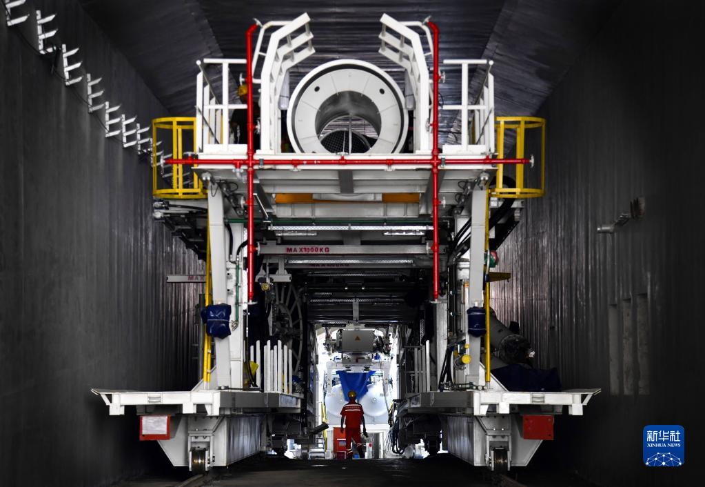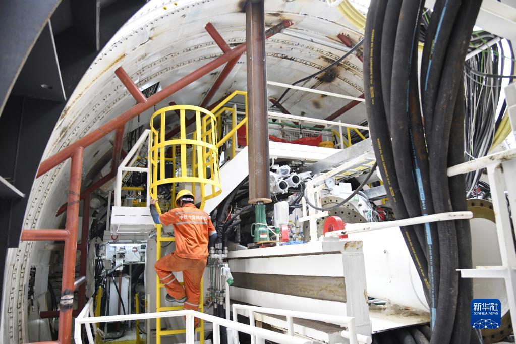 6月30日,一名工人在服务隧道内对盾构机运行进行监控、维护。新华社记者 李紫恒 摄