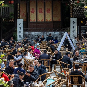 图为成都铁像寺水街的陈锦茶铺前,人们正在喝茶休闲。新华社记者 沈伯韩 摄