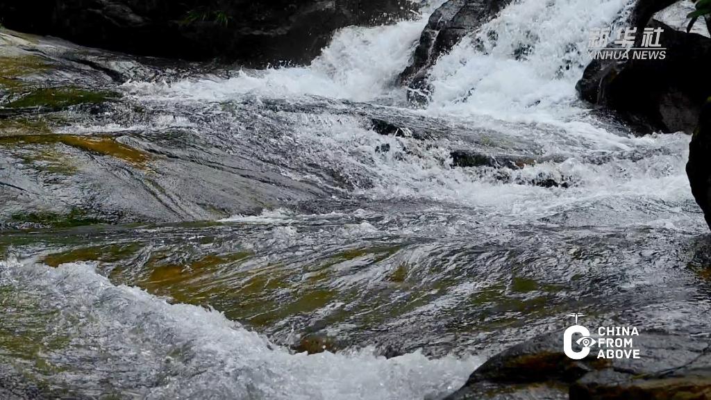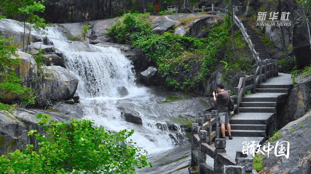 受连日降水的影响,位于湖南南岳梵音谷内的瀑布群迎来丰水期,溪水从山涧奔涌而下,溅起万朵水花,玲珑剔透,蔚为壮观。两岸的草木郁郁葱葱,正是一年之中最青翠养眼的时候,走进其中,富含氧离子的湿润空气迎面拂来,令人心旷神怡。
