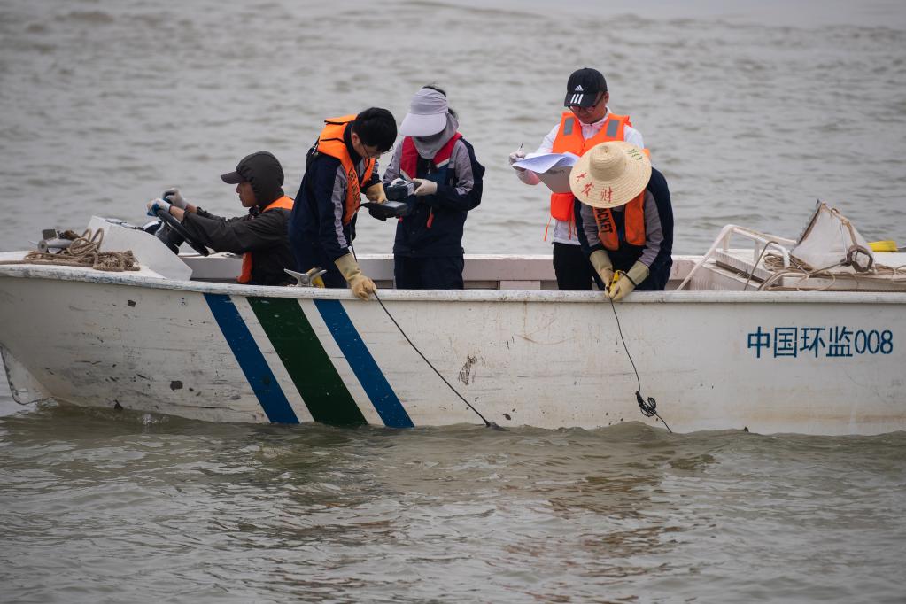 监测人员现场测定水生态环境参数(2023年5月13日摄)。新华社记者肖艺九 摄