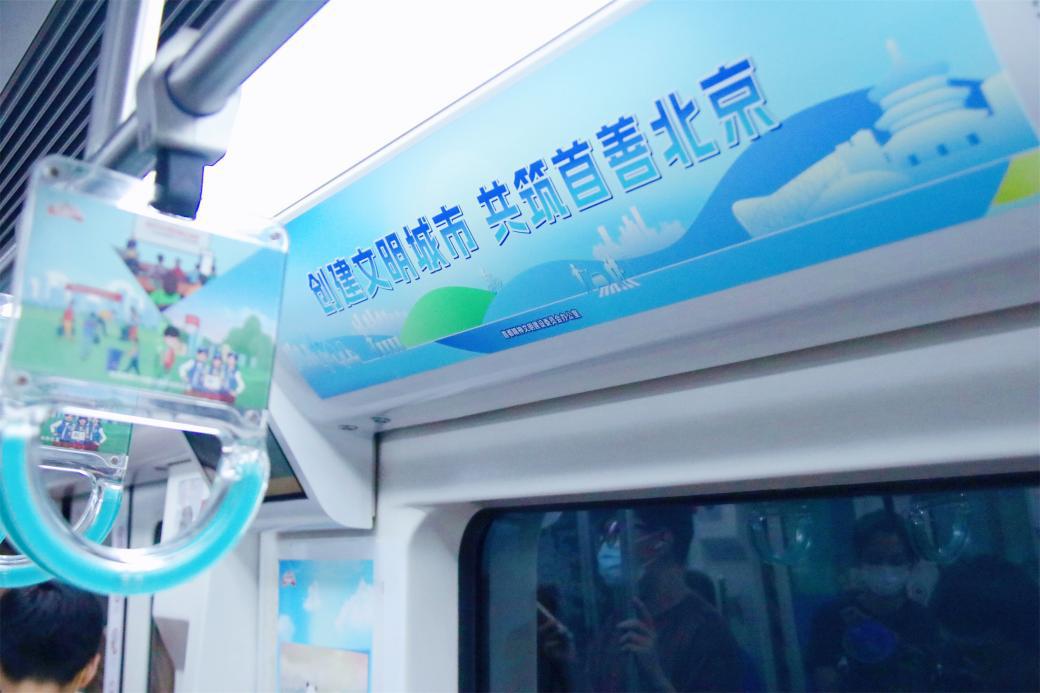 穿行地铁中,活力无极限。“文小明”“北小京”两个“文明北京”吉祥物卡通形象也出现在“文明专列”中。通过这种接地气的方式,倡导文明出行、践行垃圾分类等口号也有了更加生动的表达方式。