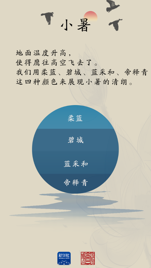 小暑是夏季的第五个节气。小暑“三候”这样写道:“一候温风至,二候蟋蟀居宇,三候鹰始鸷。”意思是说,进入小暑,凉风变成了热风;再过五日,蟋蟀热得去阴凉处避暑;再过五日,老鹰因地面温度高而盘旋于凉爽的高空。