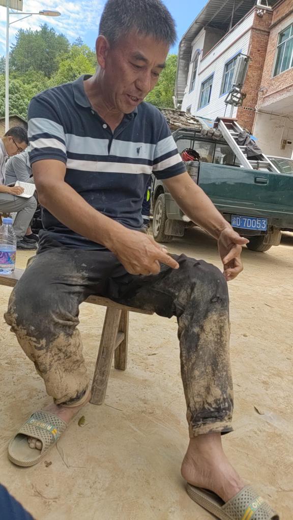 面对可能到来的险情,当地仍在转移安置群众、排查次生隐患。冯天国放下裤腿,拍了拍上面风干的泥土,又投入了新的工作……
