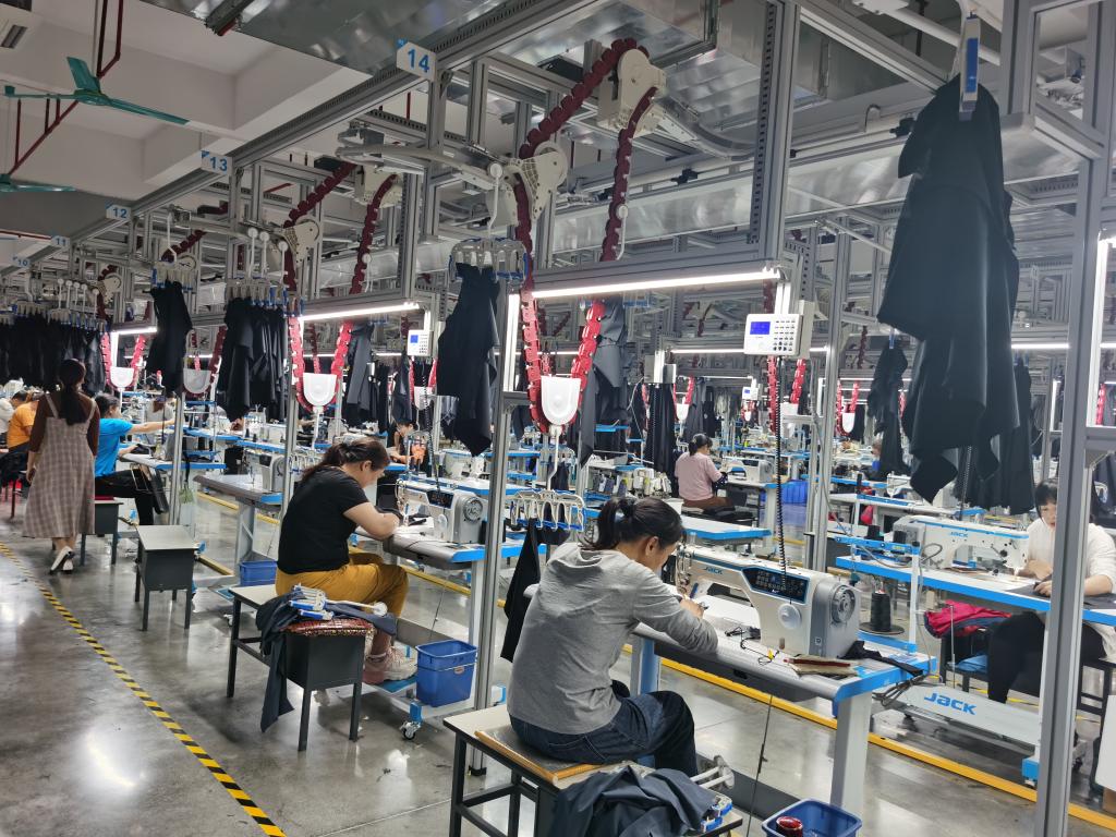 机械化裁剪、自动化传送……在玉林佳都服装集团有限公司的生产车间,工人们忙着生产各种类别的服装。流水线上,员工赖清正在用缝纫机拼接衣料。“这里工作环境挺好,工资也不错,小孩也可以带来这里托管。”赖清说,公司免费的儿童托管中心解决了员工的后顾之忧,更为就近就业和致富增收拓展了渠道。