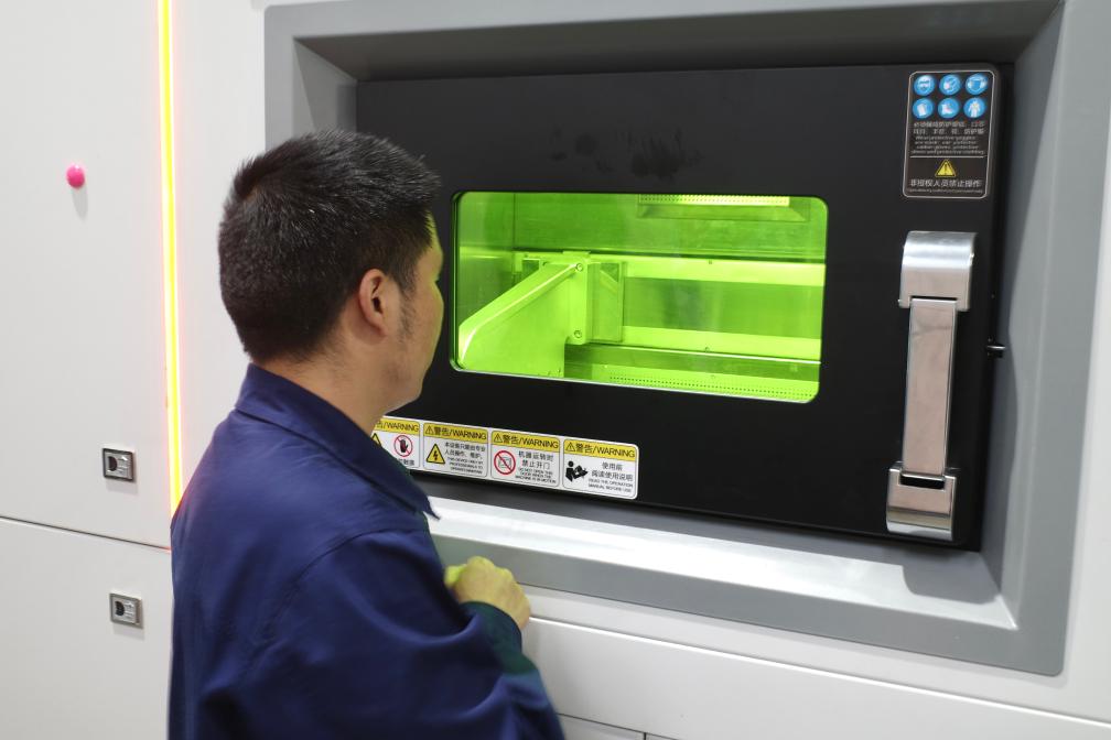 装备研发工艺工程师秦东正在操作增材制造设备。新华社记者栾若卉 摄