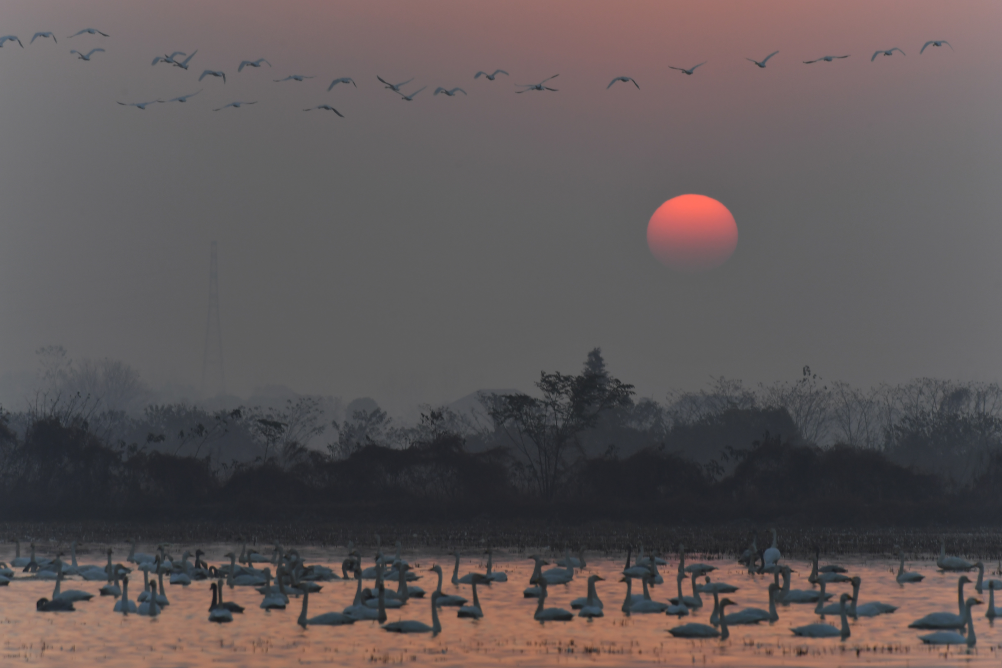这是在湖南省岳阳市横岭湖湿地保护区拍摄的候鸟。(湘阴县委宣传部供图)