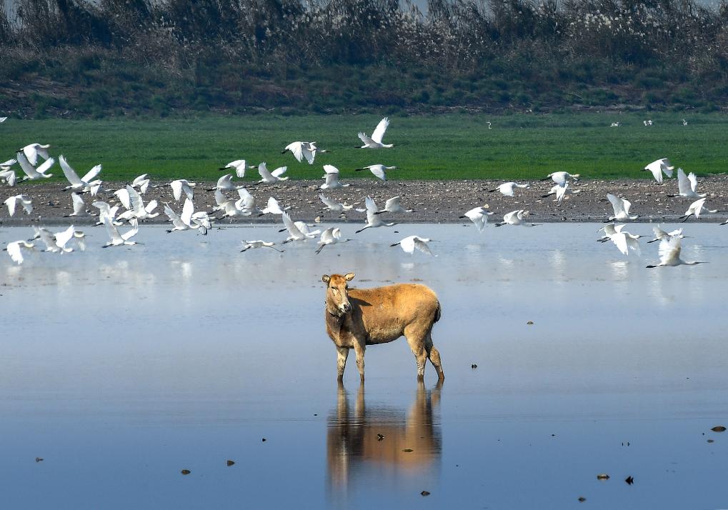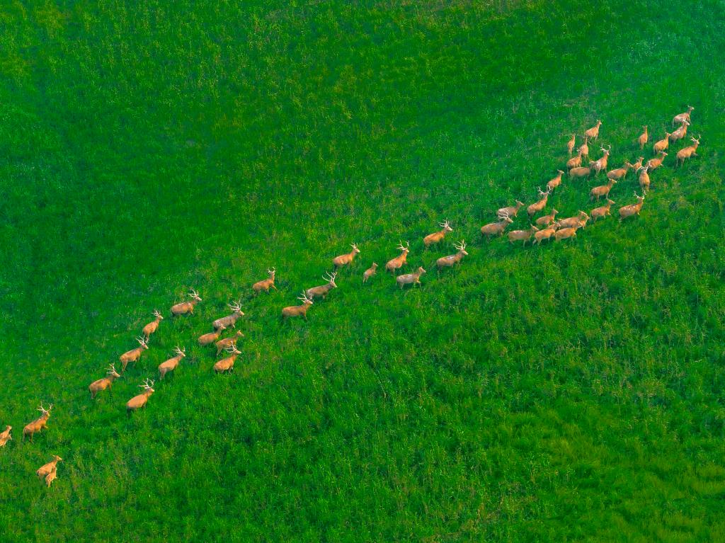 天上飞的候鸟、地上跑的麋鹿、水里游的江豚