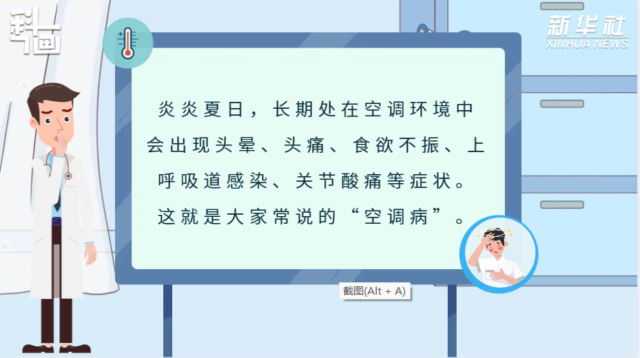 炎炎夏日,长期处在空调环境中,会出现头晕、头痛、食欲不振、上呼吸道感染、关节酸痛等症状。这就是大家常说的“空调病”。一篇动画来了解怎样预防“空调病”。