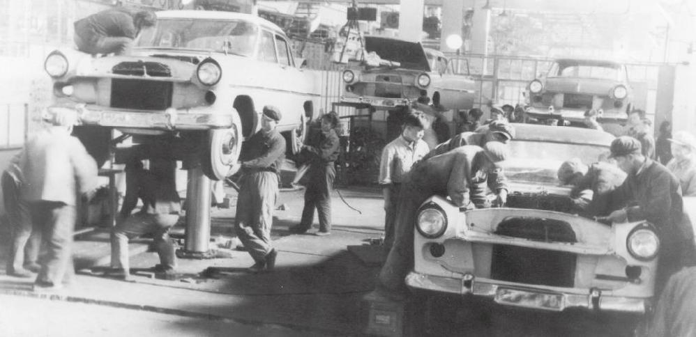 1958年的红旗轿车生产线(资料照片)。新华社发(中国第一汽车集团有限公司供图)