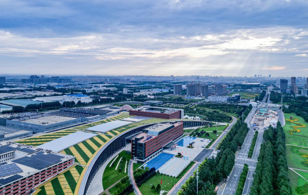 7月13日无人机拍摄的晨曦中的中国一汽总部大楼。新华社记者 颜麟蕴 摄