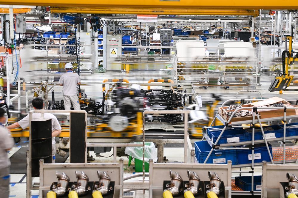 6月12日,在位于吉林长春的一汽-大众长春生产整车制造二部总装二车间,工人在生产线上装配车辆。新华社记者 颜麟蕴 摄